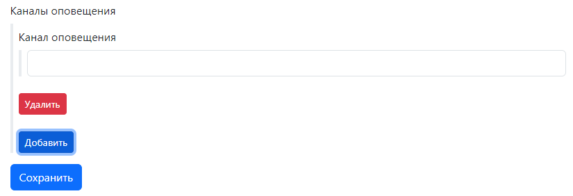 Внутри этого раздела найдите блок под названием «Каналы оповещения», нажмите кнопку «Добавить».