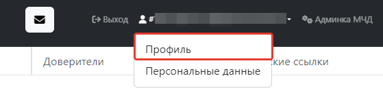 В правом верхнем углу интерфейса сервиса «Айтиком.Доверенности» нажмите на своё ФИО.